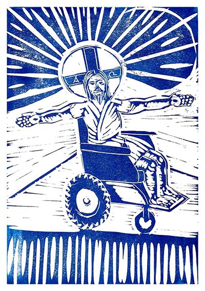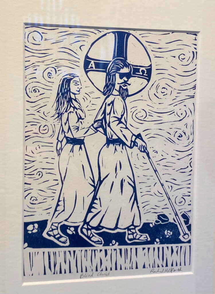 Rachel, based in Newcastle, is an active campaigner for disabled people in society and the Church, seeking to challenge long-held ideals of perfection, strength and beauty through her work. These lino-printed artworks, informed by conversations with fellow Christians with disabilities, reimagine Christ not as an idealised or distant figure, but in deep solidarity with those historically marginalised by both cultural norms and religious traditions.